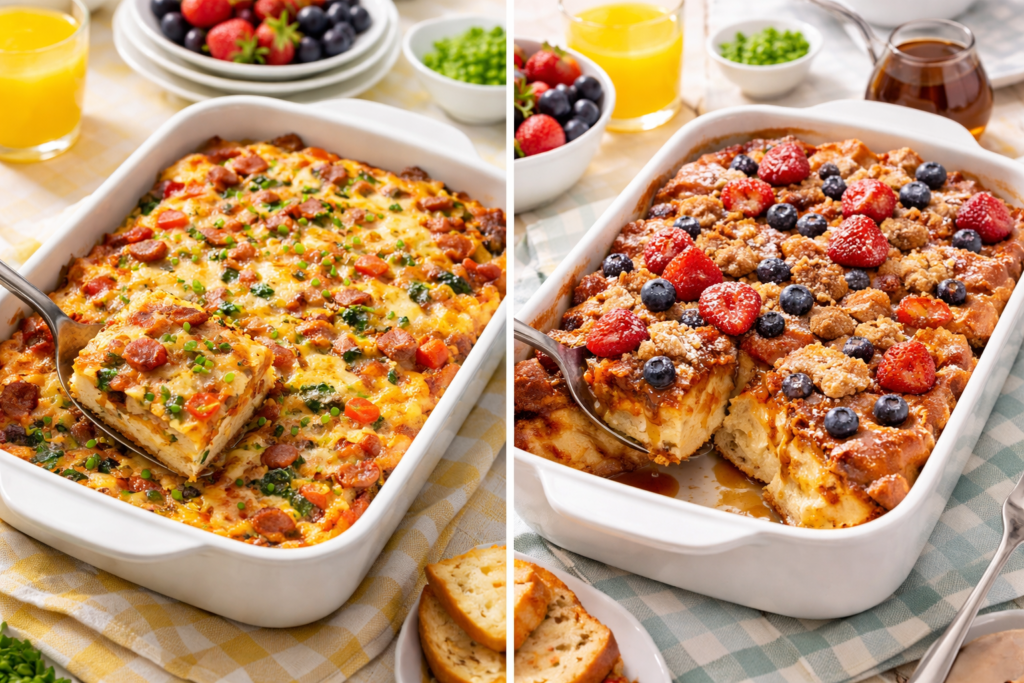 One tip is to make a big savory egg bake. You can throw in bread cubes, plenty of cheese, and whatever veggies you have in the fridge. Think spinach, peppers, or mushrooms. If your crowd likes meat, some crumbled sausage or crispy bacon works wonders.