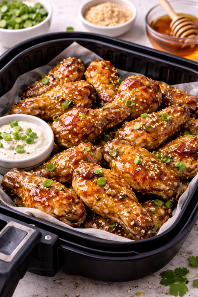 Air fry plain wings at 400°F (200°C) for 20 minutes, shaking every 5 minutes.