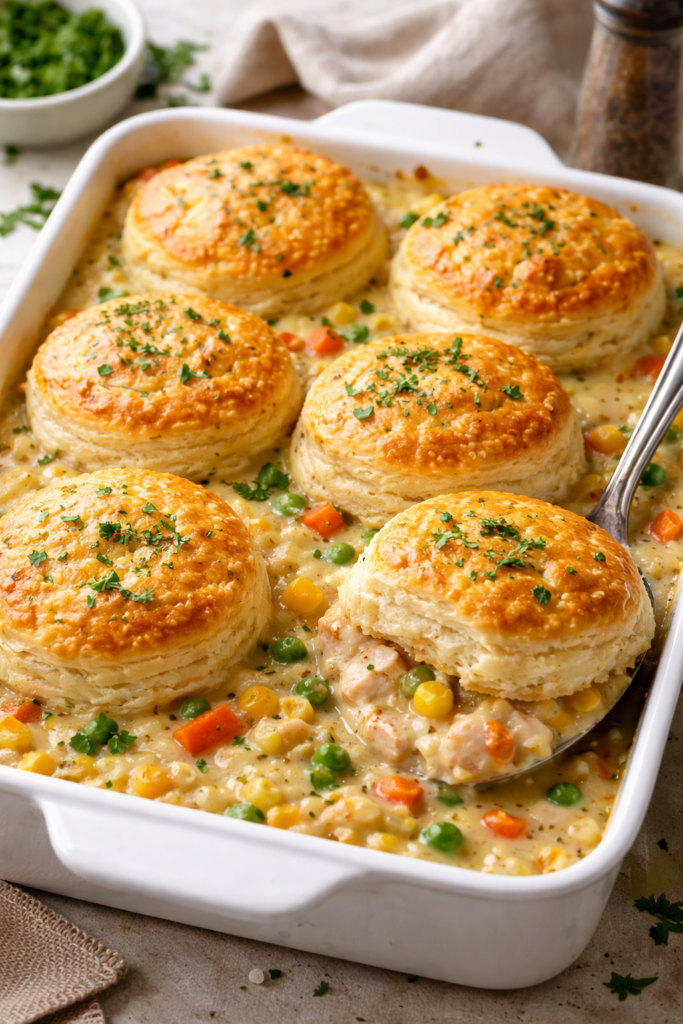 1. The “Magic” Creamy Chicken and Biscuit Bake