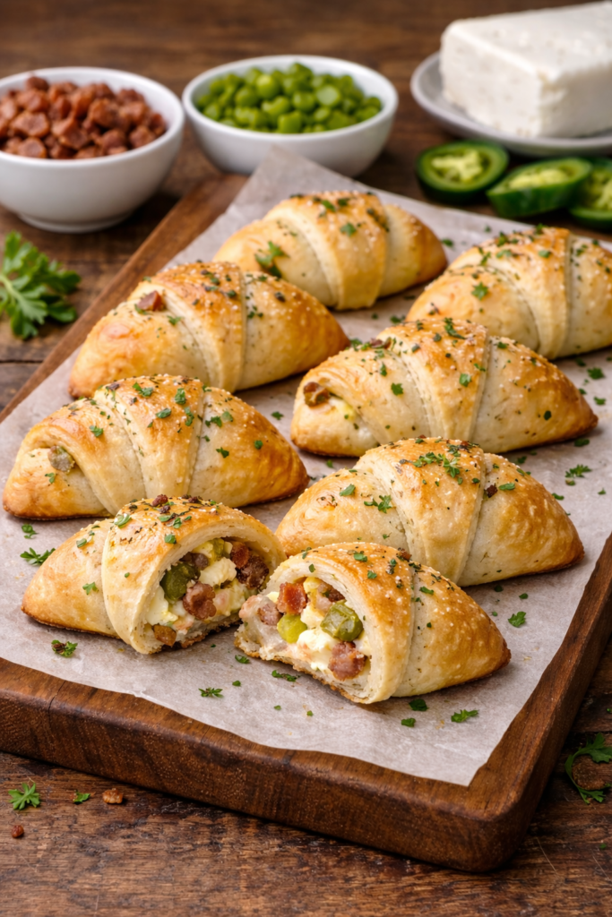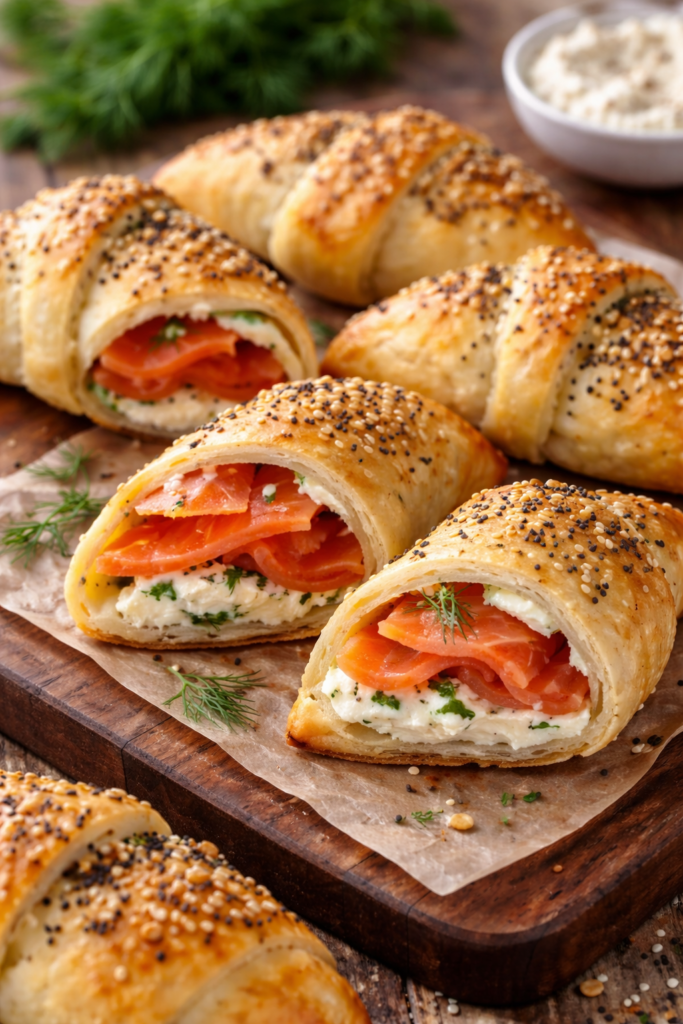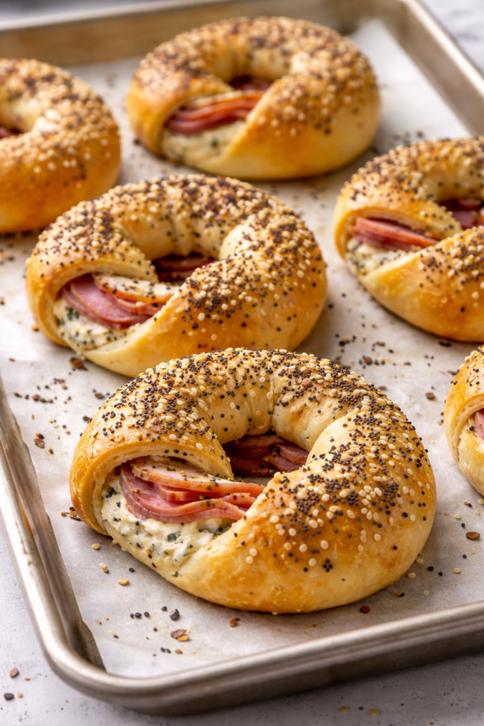 If you love the flavor of a loaded bagel, this version uses crescent dough to create a lighter, fluffier texture. It is a very effective way to serve eggs and ham.