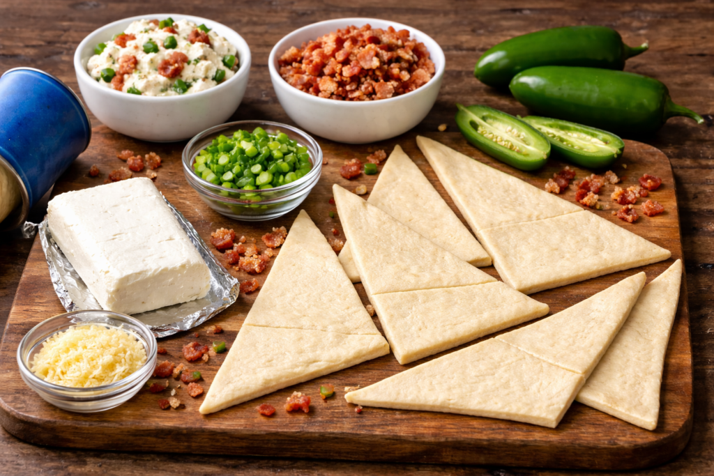 Press the crescent dough into a mini muffin tin to create small cups. This ensures the filling stays contained and makes the portions easy to eat.