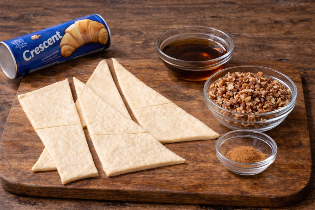 Separate the dough and sprinkle the cinnamon and remaining nuts over each piece. Roll them up as you normally would for a standard crescent roll.