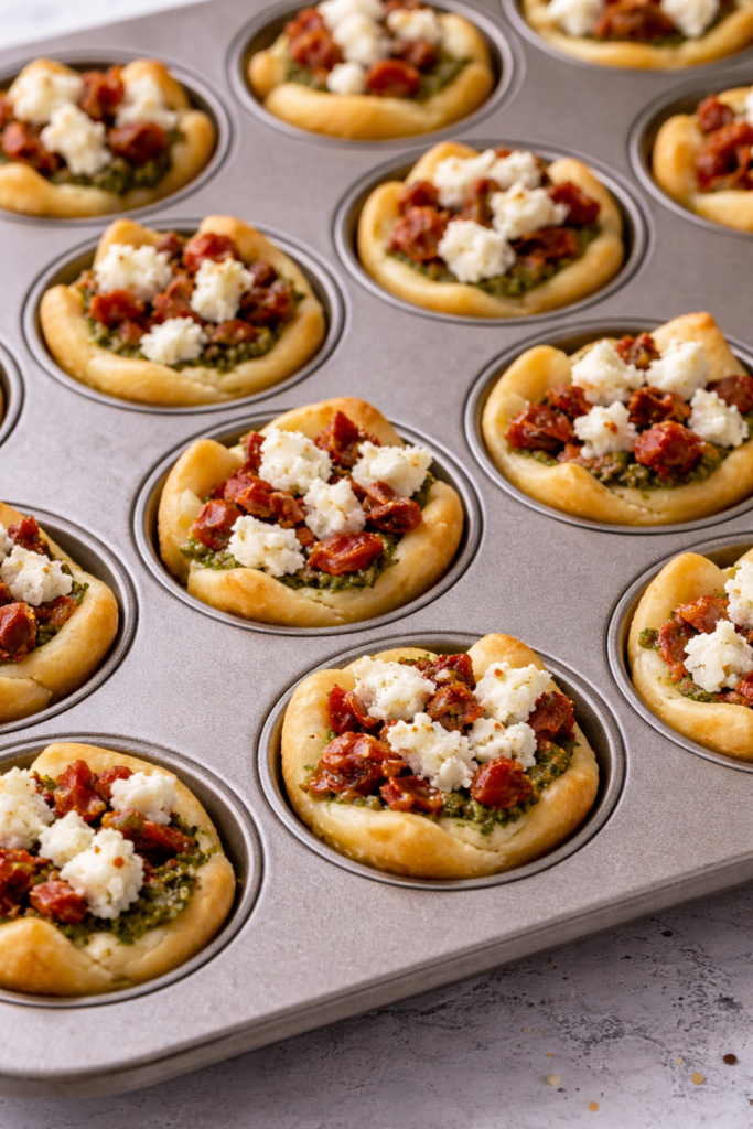 Bake at 375°F for 10 minutes. These bites are elegant and provide a Mediterranean twist that is both light and satisfying.