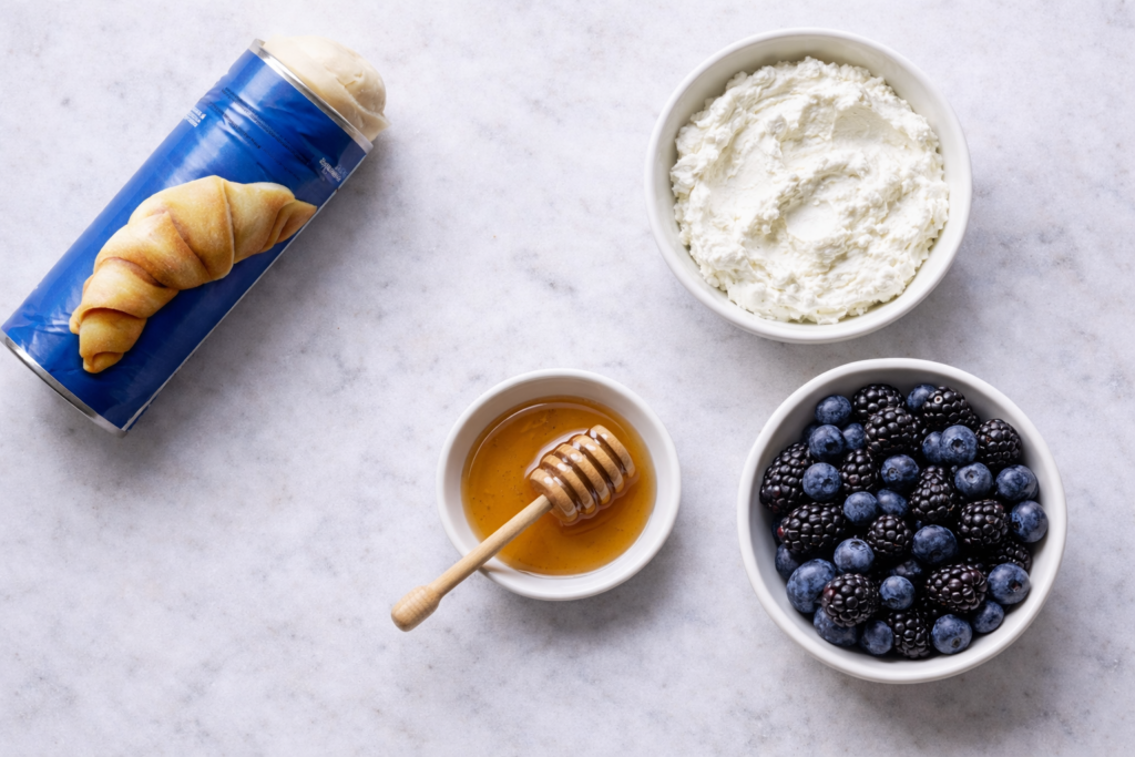 Mix the ricotta and honey together until the texture is smooth. Separate the crescent dough into its natural triangles and lay them flat on a baking sheet.