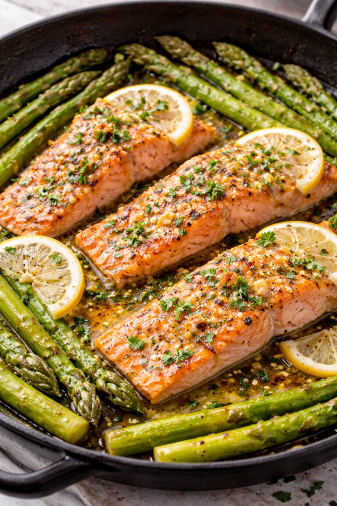 2. One-Pan Lemon Garlic Butter Salmon & Asparagus