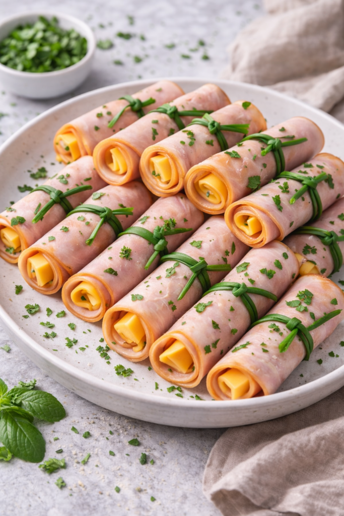Meat: Sliced turkey or ham roll-ups.