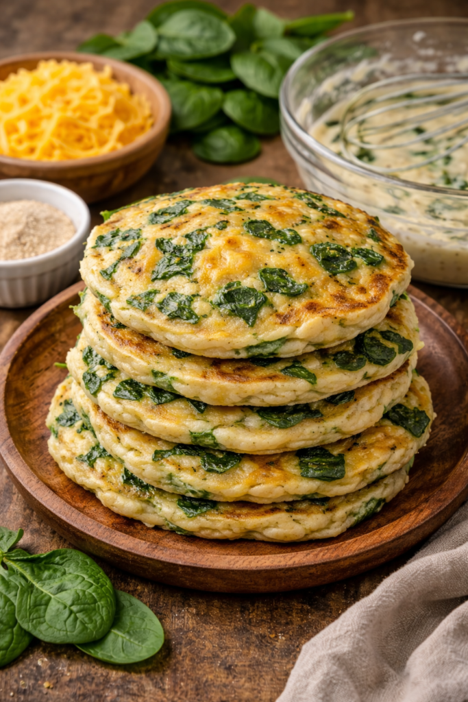 7. Spinach and Cheese Savory Pancakes