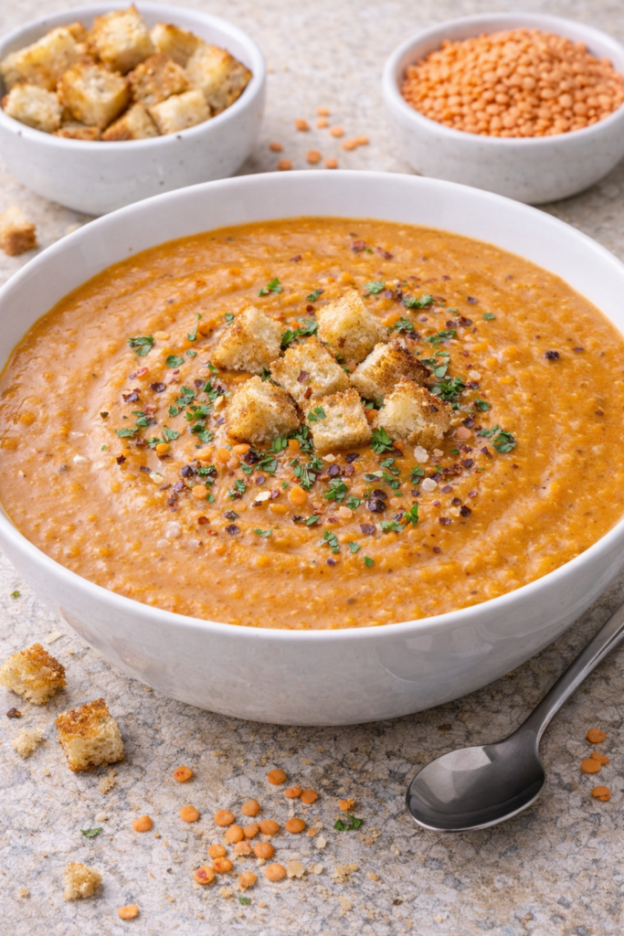1. Creamy Red Lentil Soup (The Protein Powerhouse)