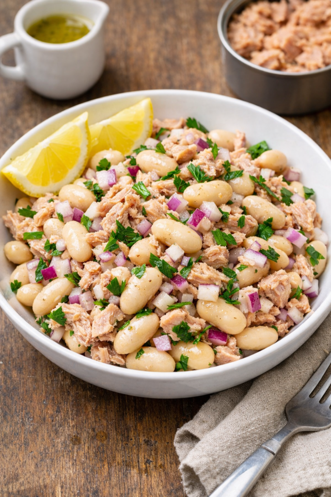 White beans are very creamy and soft. When you mix them with tuna and onions, it is delicious. Iād recommend using a lemon vinaigrette.