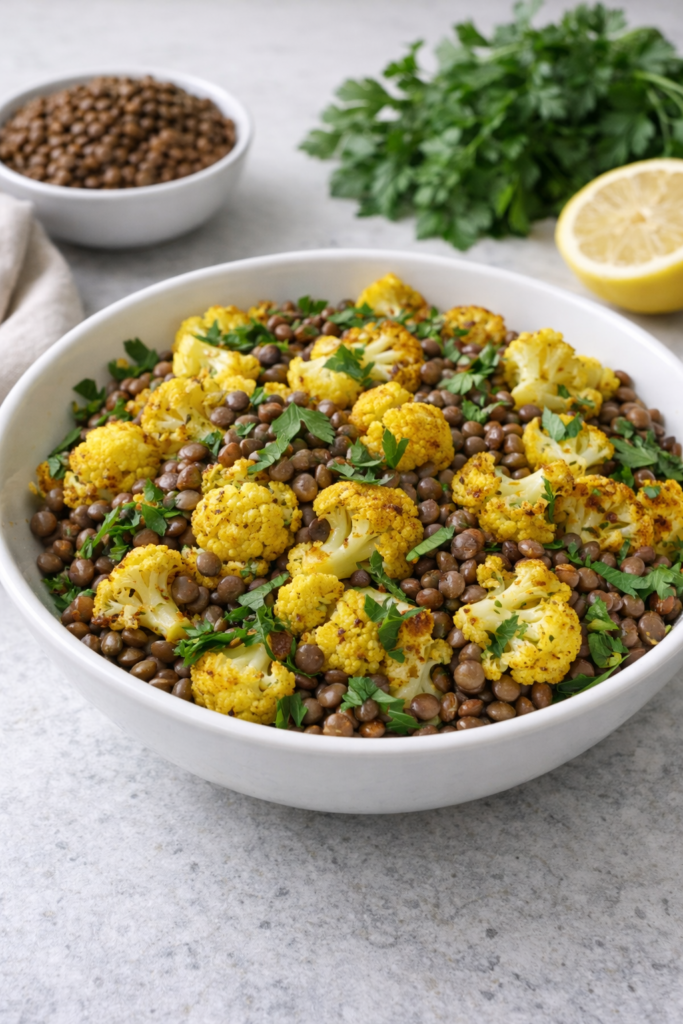 8. Roasted Cauliflower and Lentil Bowl
