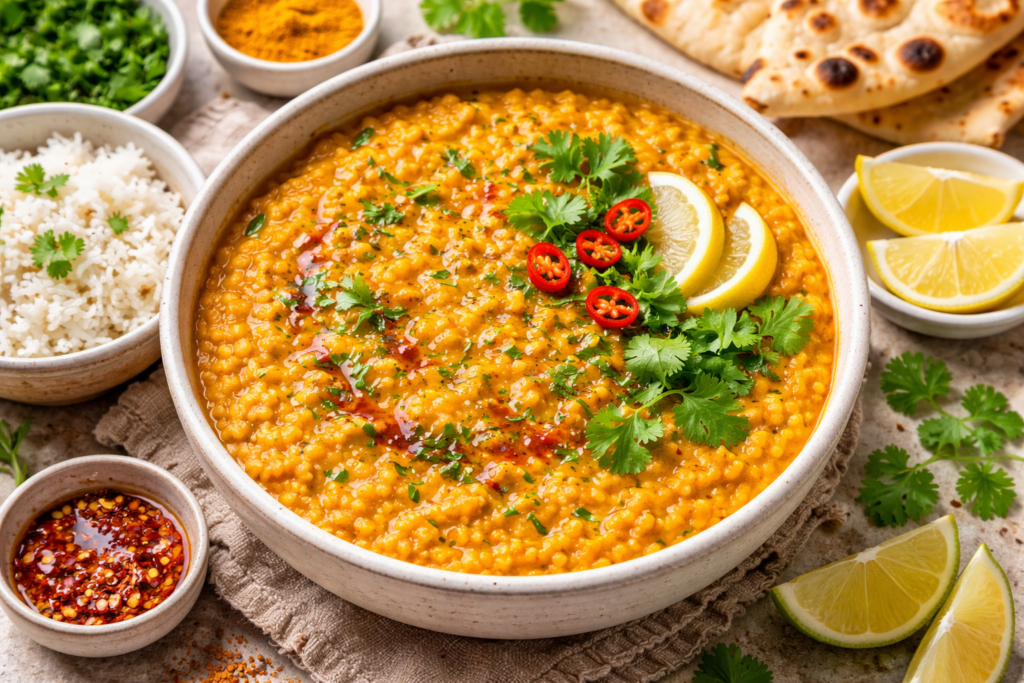 After a long day, there is nothing like a warm bowl of Dal. In India, we call lentils “Dal.” Red lentils are great because they cook very fast. They literally melt into a soft, creamy soup.