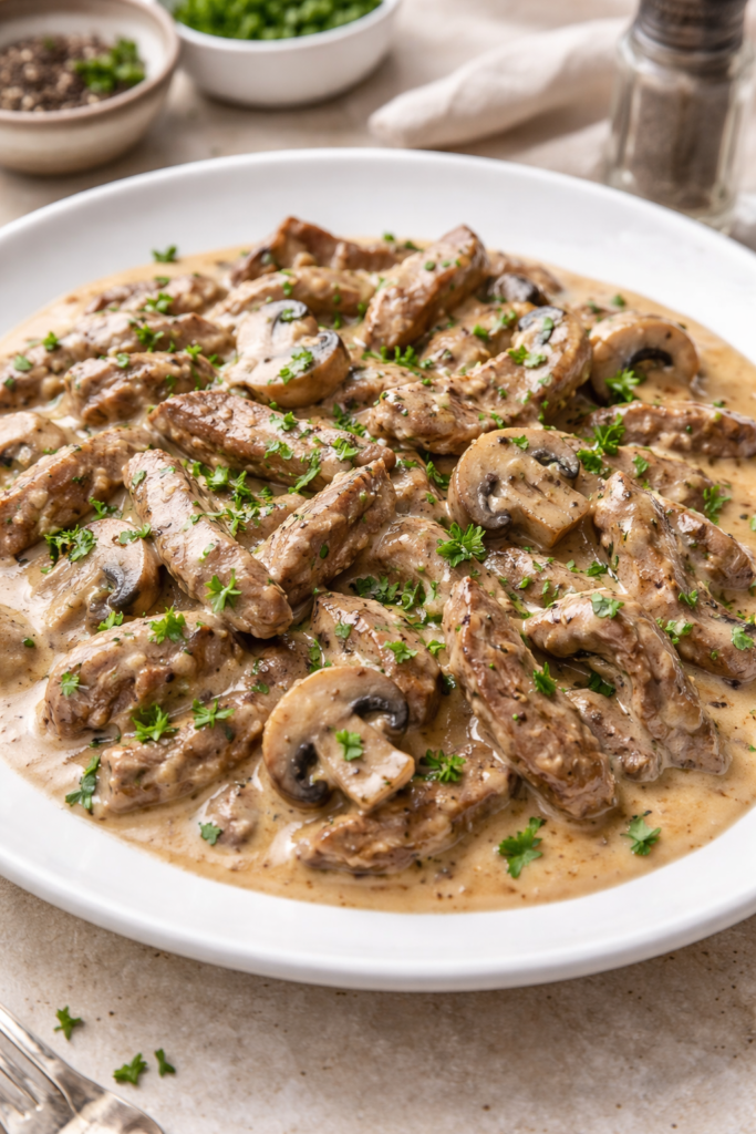 Traditional stroganoff uses egg noodles, but we are going to use zucchini noodles or just eat it as a thick stew. To be honest, the sauce is the best part anyway.