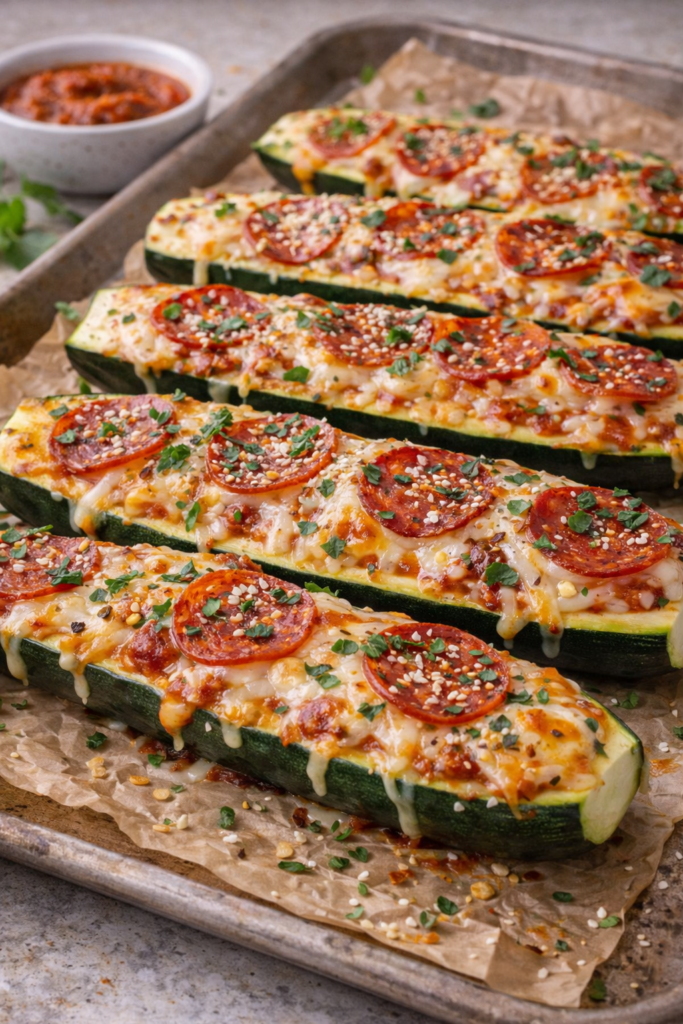 Slice a zucchini in half lengthwise and scoop out a bit of the middle.