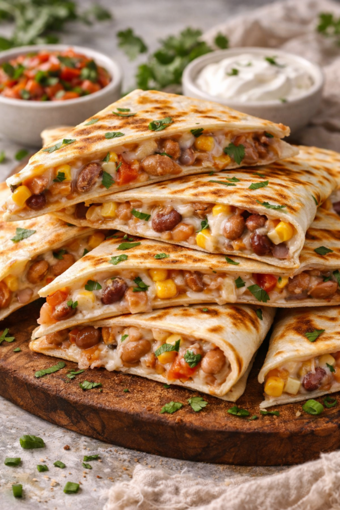 How to make it: Spread a thick layer of beans on half of a tortilla. Sprinkle some cheese on top. Fold it over and cook it in a pan with a tiny bit of butter until it is golden brown on both sides. I recommend serving these with a side of sour cream or extra salsa. Believe it or not, kids usually prefer these over meat ones because they are so soft and cheesy.