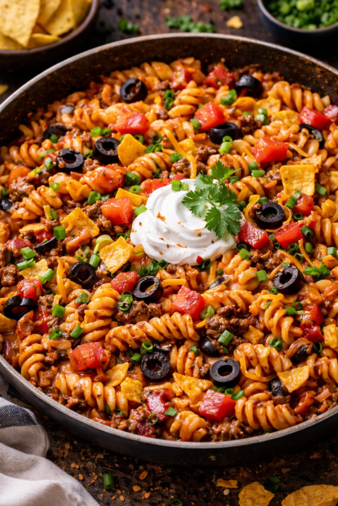 Imagine if a taco and a bowl of mac and cheese had a baby. That is what this is. It is creamy, cheesy, and uses very basic ingredients.