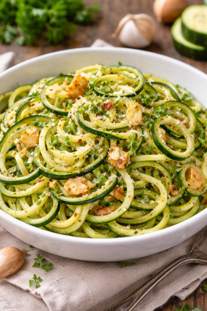 Zucchini Noodle “Zoodles” with Garlic and Oil