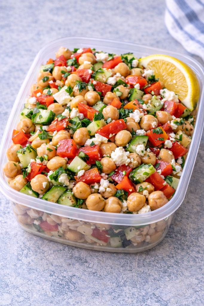 Chickpeas are great because they have a lot of protein and they do not get soggy. This salad is actually better the next day because the flavors have time to mix. It is a great vegetarian option that everyone will enjoy.