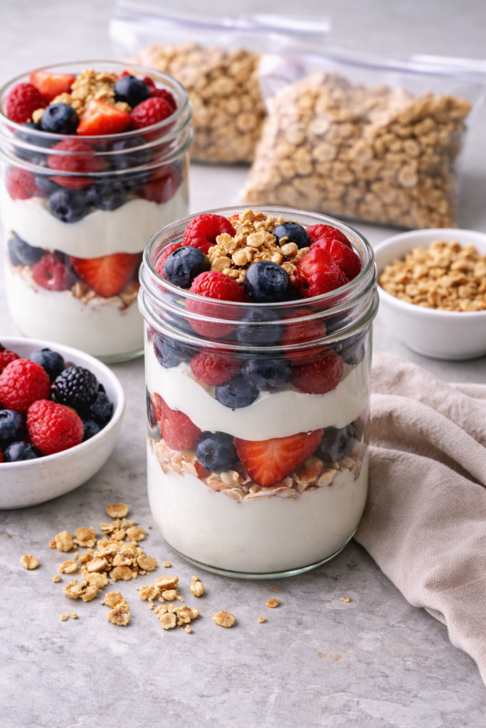 This keeps the granola from getting soft. It is a sweet and healthy option that feels like a dessert. I think it is a great choice for kids who have a sweet tooth. Plus, yogurt has lots of good things for your tummy.
