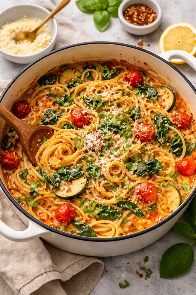 1. The “Hidden Veggie” One-Pot Pasta