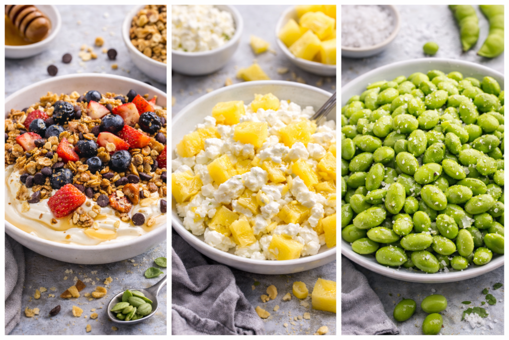 Let’s look at some vegetarian snacks with high protein and low fat that use a few different ingredients together.