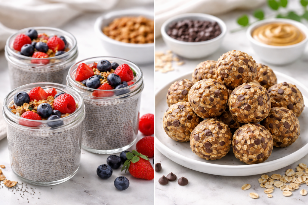 The Recipe: Mix oats, peanut butter, a little honey, and some protein powder or ground flaxseeds. Roll them into small balls and keep them in the fridge.